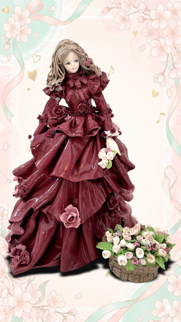 本展に並ぶ作品は、陶磁器粘土や紙粘土を用い、長い制作時間と繊細な工程を経て生まれたロマンドールたちです。